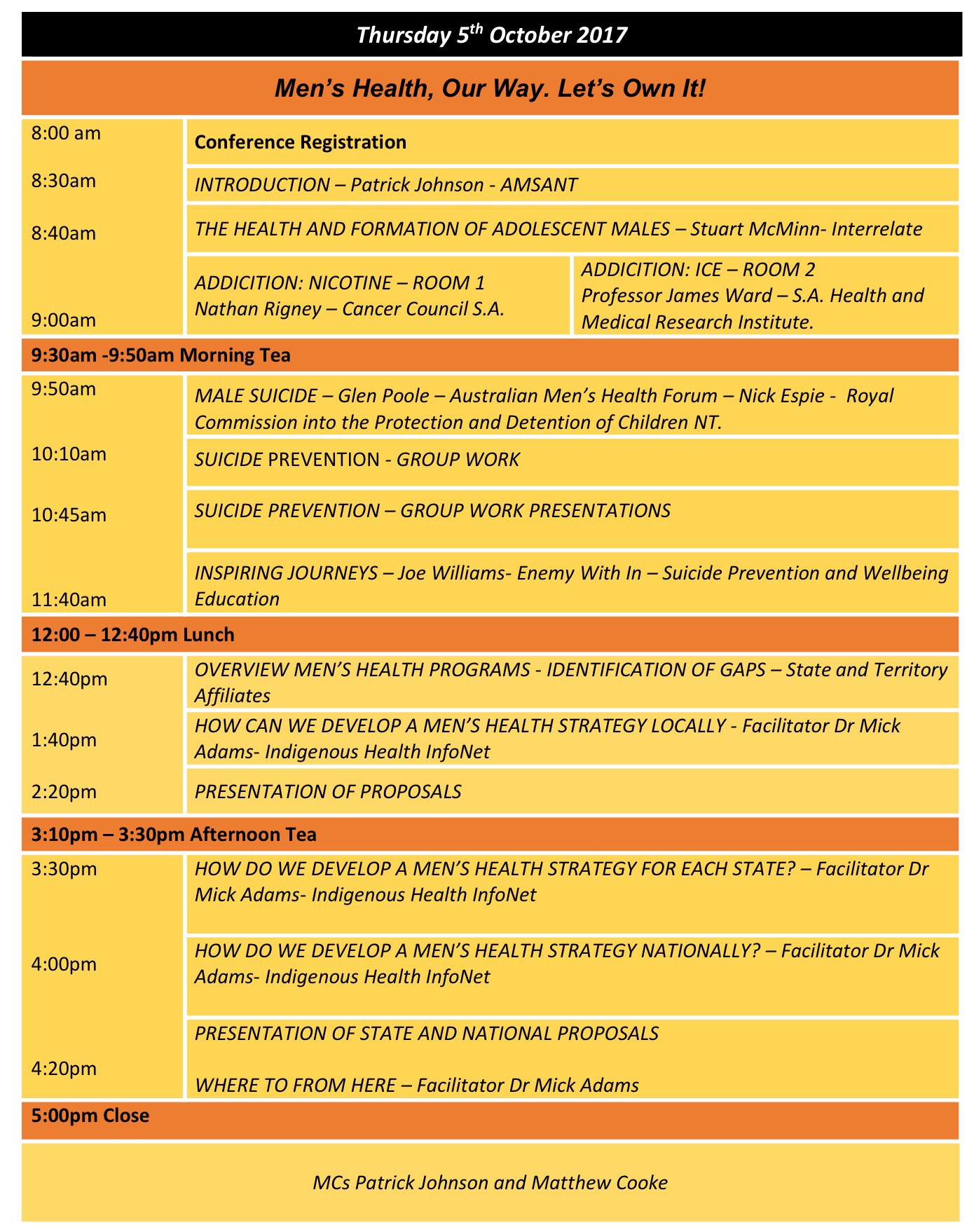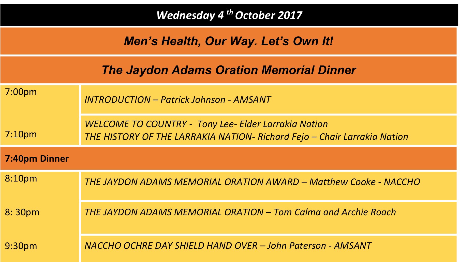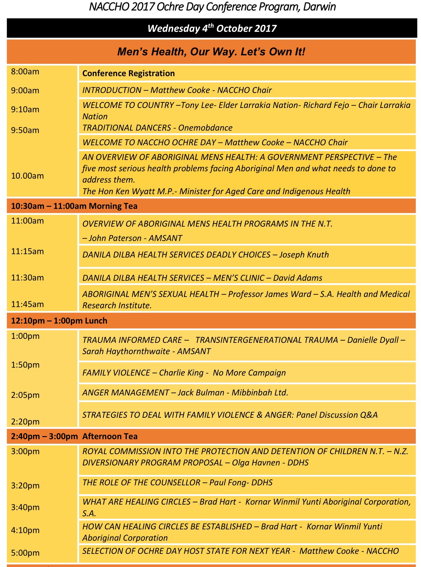 1.3 National : 2017 NACCHO National Aboriginal Male Health Ochre Day registrations Darwin NT