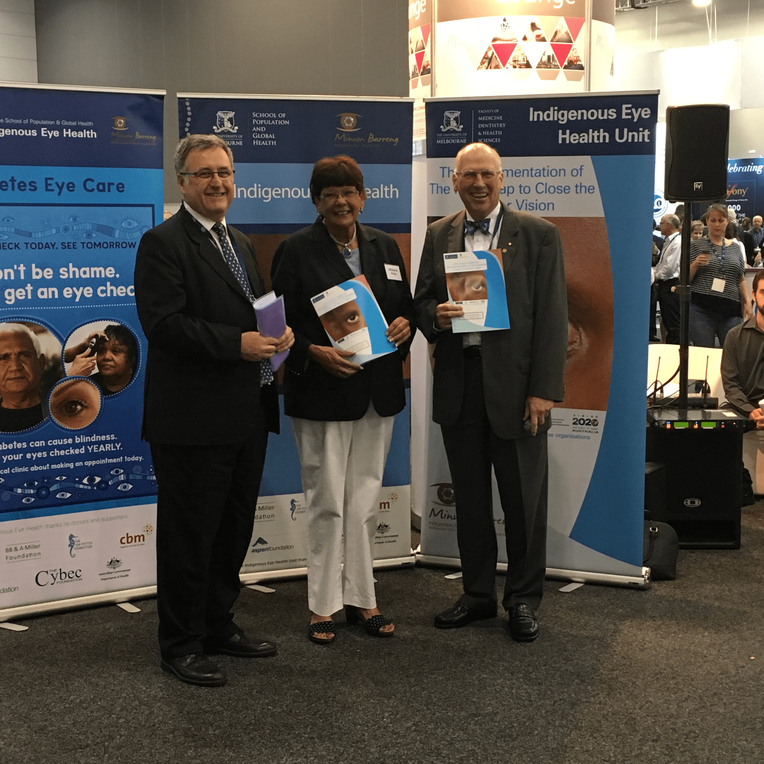 Pat Turner pictured above with Mark Daniell President, RANZCO, and Prof Hugh Taylor at the launch.